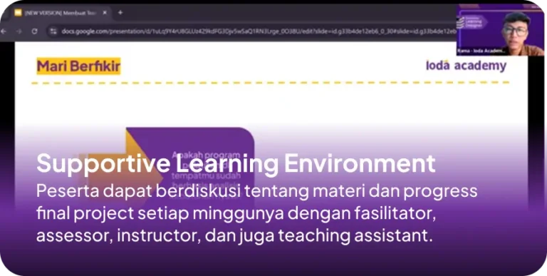Belajar dari nol dengan bimbingan yang jelas dan mentor yang asik. Banyak praktik langsung seperti membuat brand guideline. Fitur platform cukup baik, hanya perlu sedikit perbaikan di navigasi tombol.